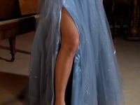 Entfesseln Sie die Prinzessin in sich in diesem zauberhaften A-Linien-Kleid, einer traumhaften Kreation, mit der Sie die Ballkönigin sein werden. Das verzierte Spitzenmieder ist ein Meisterwerk komplizierter Details, während die transparente Taillenstruktur dieser zeitlosen Silhouette einen Hauch von modernem Flair verleiht. Zarte Träger mit Spitzenapplikationen zieren Ihre Schultern und verstärken den romantischen Charme. Der mehrlagige Glitzertüllrock funkelt bei jeder Drehung und erzeugt eine magische Aura, die perfekt für junge und lebhafte Menschen ist. Ein verspielter Beinschlitz sorgt für einen Hauch von Flirt, sodass Sie selbstbewusst die ganze Nacht durchtanzen können. Der Schnürverschluss im Korsettrücken sorgt nicht nur für eine perfekte Passform, sondern verleiht diesem märchenhaften Ensemble auch einen Hauch von Verspieltheit. Treten Sie ein in eine Welt der Fantasie und machen Sie dieses Kleid zur Leinwand für Ihre jugendliche Eleganz und Ihren temperamentvollen Charme.