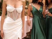 Sehen Sie in diesem wunderschönen, verzierten, trägerlosen Korsettkleid aus Satin umwerfend sexy aus. Dieses figurbetonte Kleid ist aus luxuriösem Satinstoff gefertigt, der Ihre Kurven perfekt umhüllt und jeden glamourösen Anlass perfekt zur Geltung bringt. Die geraffte Taille und das trägerlose, transparente Mieder, hervorgehoben durch zarte Stäbchen für die perfekte Silhouette, verleihen eine subtil-sinnliche Note und geben Ihnen das Gefühl, königlich zu sein. Dieses Stück ist nicht nur mit seiner atemberaubenden Schönheit zufrieden, sondern verfügt auch über einen aufregenden Beinschlitz, der Ihnen das Gefühl gibt, umwerfend attraktiv zu sein. Egal, ob Sie zum Abschlussball gehen oder Ihre Hochzeitsgarderobe vervollständigen, dieses trägerlose Korsettkleid ist der Inbegriff zeitloser Eleganz.