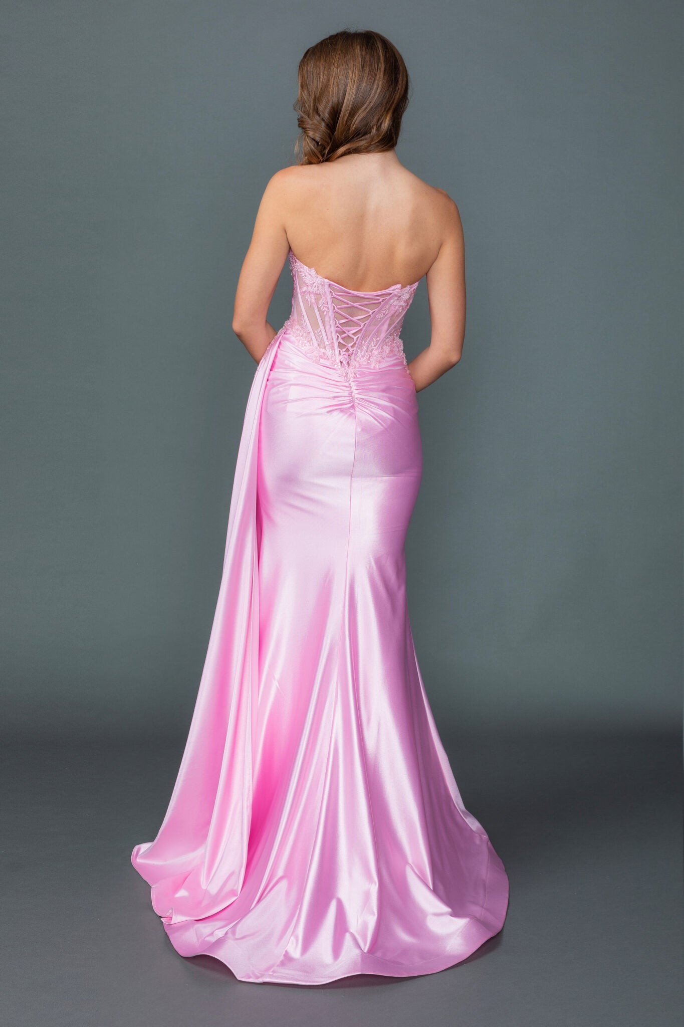 Dare to stand out in the Model 4603! This fitted mermaid gown, featuring a sweetheart illusion corset bodice and delicate spaghetti straps, hugs your curves and amplifies your confidence. Adorned with shimmering glitter embroidery, this floor-length dress commands attention at any event. Embrace the spotlight and redefine glamour!