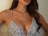 - Design: Plunging neckline, thin straps & body contouring embellishment