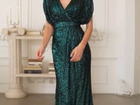 Make an unforgettable entrance in this dazzling full-length sequin gown. Featuring a draped surplice bodice with flutter sleeves and a flattering cinched waist, this figure-hugging silhouette delivers timeless glamour. Crafted from shimmering sequin fabric with a back zipper closure, this gown is ideal for evening galas, black-tie weddings, mother of the bride moments, or any formal event where sparkle is essential.