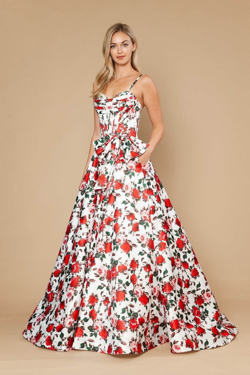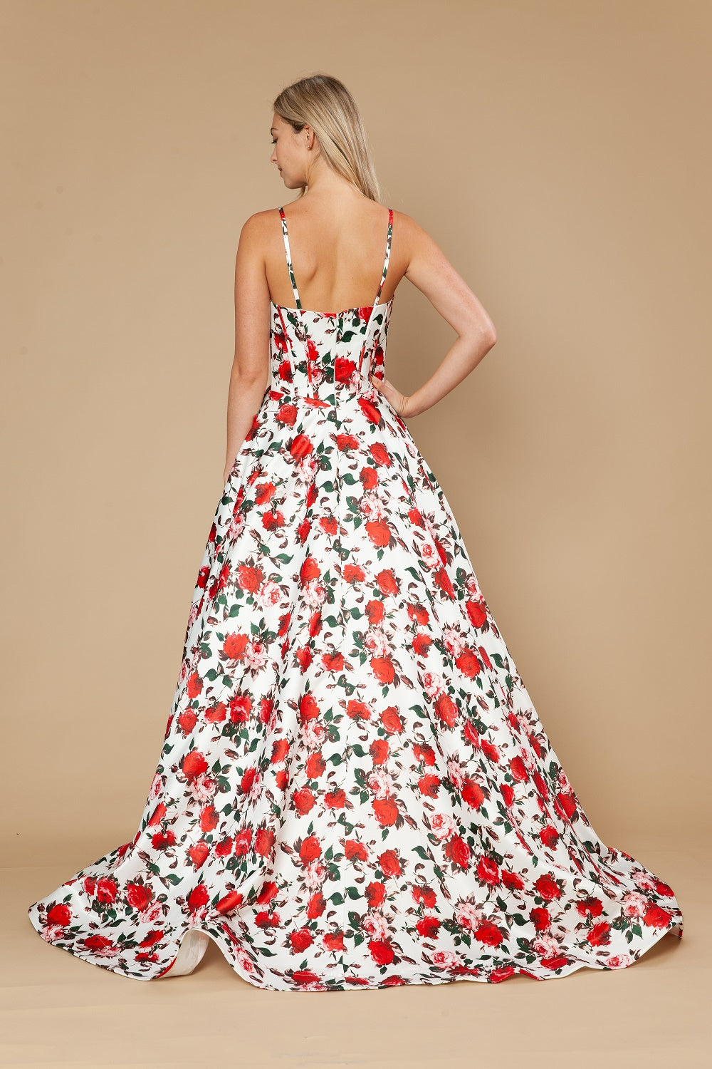 This Poly USA floral print gown gives soft elegance. The design is complemented by a graceful neckline and delicate straps, creating a timeless and feminine appeal. The skirt flows smoothly with subtle movement adding just the right amount of allure. Crafted from high-quality fabric, this gown offers both comfort and style, perfect for making a statement at any special event.
