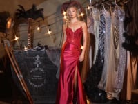 - Design: Strapless sweetheart neckline, illusion corset bodice, beaded detailing