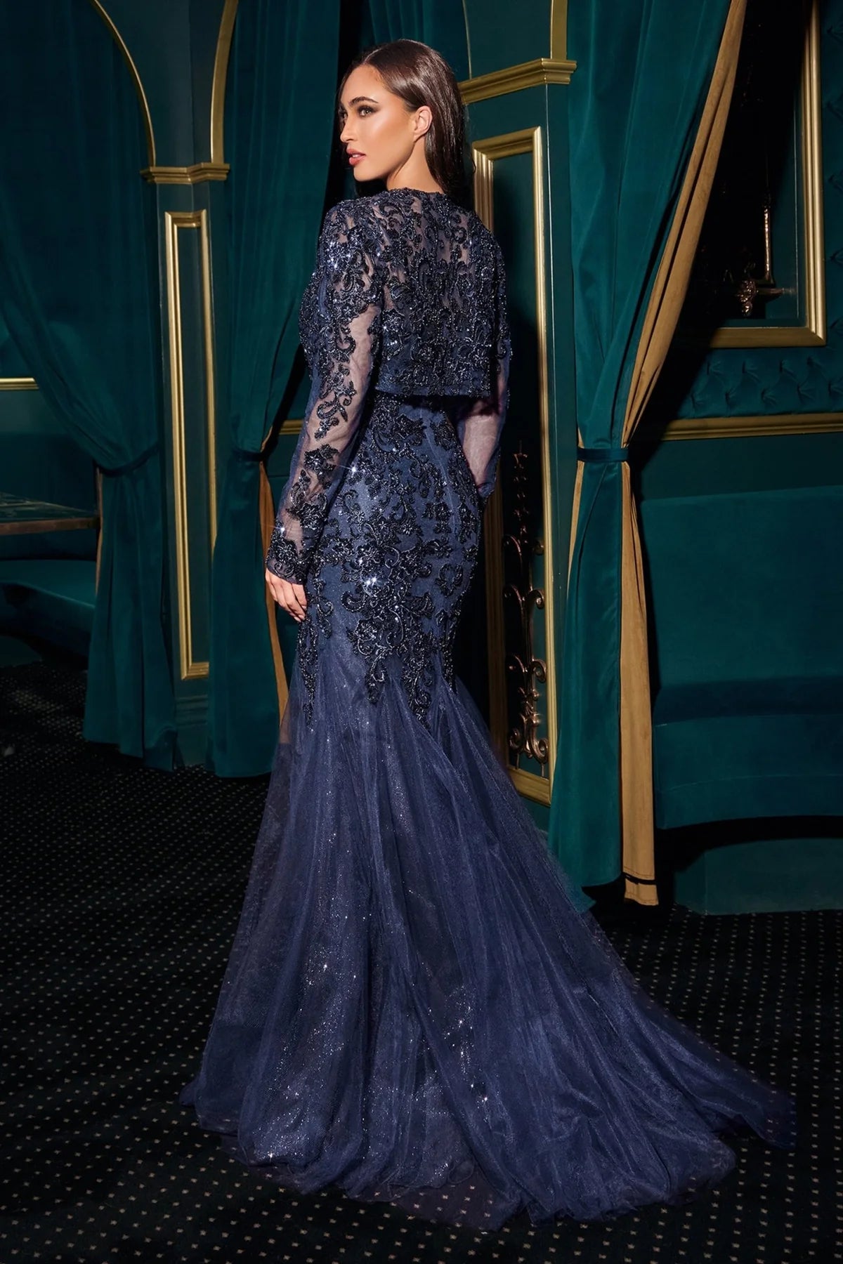 This glamorous mermaid gown features a deep sweetheart neckline and shimmering sequin floral detailing that accentuates every curve. The structured bodice offers flattering support, while a matching long sleeve jacket provides an elegant and versatile finishing touch. Perfect for black tie affairs or mothers of the bride seeking a refined yet radiant look.