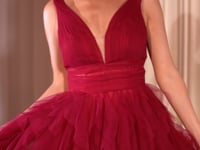 Step into a world of ethereal enchantment in this layered tiered tulle A-line dress, a dreamy creation destined for the woman who craves romance and flair. The cascading tiers of tulle create a mesmerizing dance of dimension and fullness, ensuring every step feels like a poetic twirl. The deep V-neckline adds a touch of allure, gracefully framing your décolletage with a hint of sensuality. A fitted waistband accentuates your silhouette, striking the perfect balance between whimsy and elegance. Delicate straps provide a dainty touch, leading to a mid-open back that adds a modern twist to the fairy-tale aesthetic. Whether you're attending a gala or celebrating a special moment, this dress promises to be your ticket to an evening of grace and enchantment, turning every gaze into a captivated sigh.