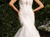 This lace mermaid wedding dress is an indulgence fit for a queen. Flatter your curves in a modern mermaid bridal gown, featuring a layered lace fabrication and deep plunging keyhole neckline. For added glamour, the dimensional floral applique cascades down to your waist and features thin straps that connect into a subtle open back silhouette. This romantic showstopper is essential for any bride who wants to feel eye-catching and sexy on her big day. Whether you’re having an outdoor wedding or an indoor ceremony, this stunning design will make you look and feel like royalty. Allow the warm embrace of the fabric as it seamlessly hugs your figure against a perfect balance of sophisticated style and contemporary charm. Dare to be different and show off your one-of-a-kind fashion statement with this exquisite lace mermaid wedding dress!